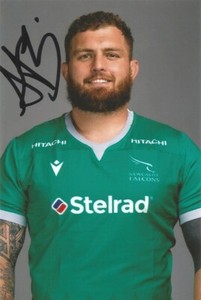 NEWCASTLE FALCONS RUGBY UNION: TIAN SCHOEMAN SIGNED 6x4 ACTION PHOTO+COA
