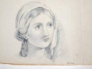Early 19th century pencil study. Female portrait, initialed, dated 1814