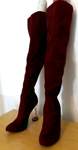 Forever Womens Maroon Suede Platform Thigh-High 4" Clear Heel Boots Size 6.5 NWT