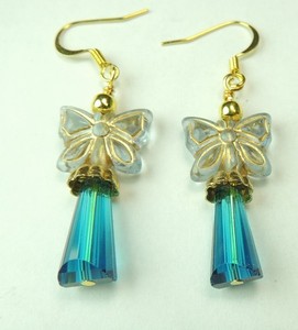 Blue Crystal Briolettes & Butterflies Earrings Handmade Statement Chic Jewelry