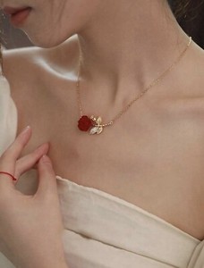 Red Rose Gold Necklace Womens RED ROSE Necklace Pendant Red Flower Stainless