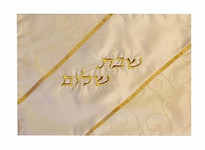 Pure White Satin Challah Cover in Gold & Silver Lichvod Shabbat V-Yom Tov 19x15