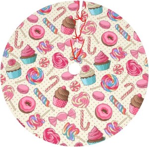 Colorful Lollipop Candy Macaroon Cupcake Donut Tree Skirt 36" for Merry Xmas Hal