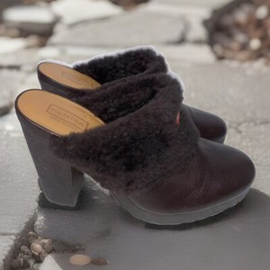 Hunter Size 9 Bruson Shearling Lined Leather Shoes Brown Heels Clogs Mules Boots