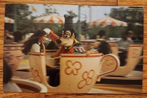 Goofy in Tea Cup Ride Disney World Postcard PC 1970s Unused Florida