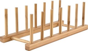 Bamboo Wooden Dish Rack Vertical Plate Lid Organizer Kitchen Cabinet Countertop