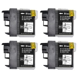 4 Black Ink Cartridges to replace Brother LC980Bk & LC1100Bk non-OEM/Compatible