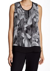 T Tahari Maisy Blouse Top Size M Layered Floral Sleeveless Light NWT! Reg. $78