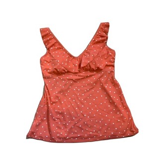 Kim Rogers Polka Dots Tankini Swim Top Size M Adjustable Straps Vacation NWT