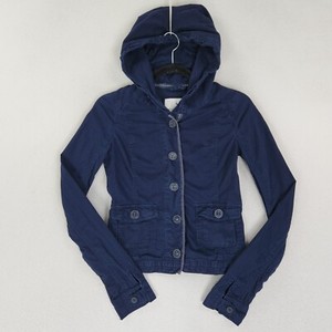 Abercrombie Fitch Jacket Girls Medium Navy Blue Hooded Adirondack Heritage Kids