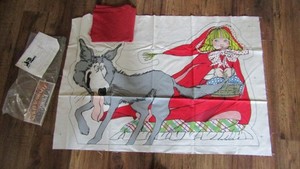 Vintage RED RIDING HOOD & WOLF Sculpture PILLOW Fabric Panel w/BACKING FABRIC