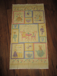 Vintage KITTY AND ME INVITE YOU TO TEA WALL HANGING Fabric Panel- 1990's
