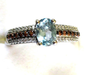 Santa Maria Aquamarine & White Zircon Ring / size 9 / 925 Sterling Silver