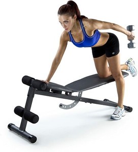 Weider XR 5.9 Adjustable Slant Workout Bench with 4-Roll Leg Lockdown and Chart