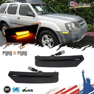 For 02 03 04 Nissan Xterra Smoked Lens Amber LED Front Bumper Side Marker Lights