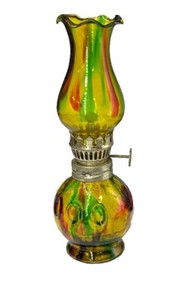 VINTAGE MULTICOLOURED GLASS PIXIE /FAIRY STYLE OIL LAMP MADE IN HONG KONG