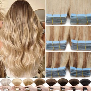 Tape in Skin Weft Hair Extensions Invisible Glue in Remy Human Hair Full Head US S$ 34.86 to S$ 191.05