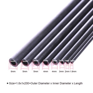 Carbon Fiber Tube 1.8mm~6mm OD x 1mm~4mm ID x 200mm & 400mm Length Round