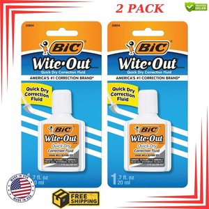 ✅(2-PACK) BIC White Wite Out Quick Dry Foam Brush Correction Fluid 0.7Fl Oz/20ml