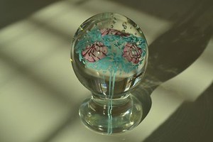 Flowers with Bubble Centers & Blue & Green Stems on Egg Glass Paperweight, M23