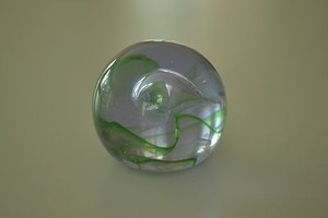 Signed & Dated Glass Paperweight, 2008, Bubbles in Clear on Green & White, M153