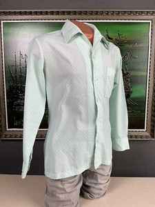 1970s Disco Joel Cal Made Mens Mint Polkadot Polyester Short Sleeve Shirt Medium
