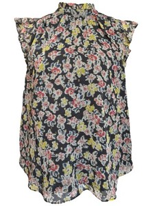 LOFT Floral Ruffle Blouse Metallic High Neck Sleeveless Lined Womens M