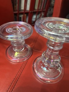 Set Of 2 Krosno Poland Iridescent Glass Pedestal Candle Holder