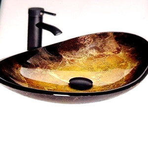 Bronze Bathroom Artistic Glass Vessel Sink Oval Faucet
