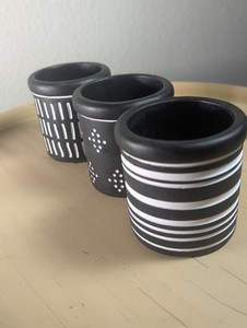 Trio Of Clay Succulent Pots White On Black Design Rustic Charm 5 Inches Tall