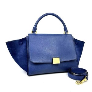 Celine Handbag Tote Bag 2Way Shoulder Crossbody Trapeze Tricolor Leather Blue