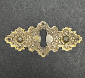 Vintage SINGLE MID WEIGHT Brass Skeleton Key Hole Door Drawer Plate Escutcheon