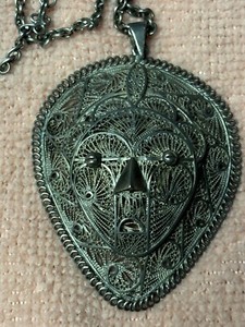 Sterling Silver Pendant/Brooch Eilat Green Gemstone. .925 Israel. Vintage.