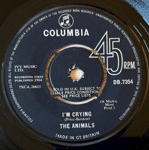 THE ANIMALS I'M CRYING 7" COLUMBIA (1964) EX BEAT GT BRITAIN