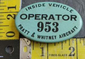 PRATT & WHITNEY AIRCRAFT INSIDE VEHICLE OPERATOR WW2 ERA EMPLOYEE BADGE {B28}