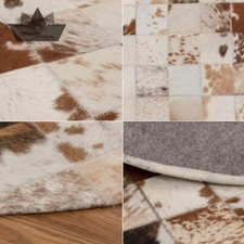 New Handmade HairOn Fur Leather Cowhide Round Rug Cow Skin Carpet Patchwork Area