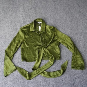 Buffalo David Bitton Black Viscose Sheer Button Down Blouse Top Lace Trim S