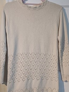Laura Ashley Jumper Vintage 1990s Cream Crochet 100% Silk Size Small UK 8/10