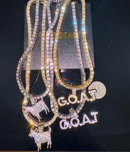 Hip Hop Iced Gold Plated Alloy Goat & G.O.A.T Pendant, Tennis Necklace Chain Men