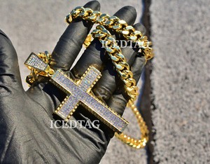 MENS HIP HOP ICED BLING-ED OUT JUMBO CROSS LAB DIAMOND PENDANT CHARM, 30" CHAIN