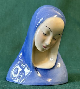Goldscheider Madonna Figurine Virgin Mary Original Blue & White Porcelain 4.75"