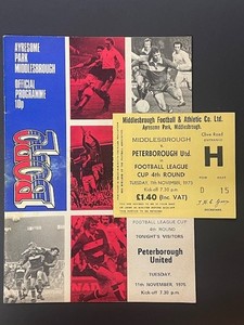 1975/76 MIDDLESBOROUGH V PETERBOROUGH UNITED 11-11-1975 LEAGUE CUP & TICKET