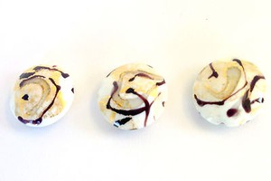 Puffed Circle Murano Lampwork Glass Beads Cream Gold Copper and Black Quantity 3