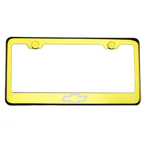 Gold Chrome License Plate Frame T304 Stainless Steel Laser Engraved Chevy Logo