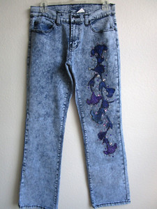 DIANE GILMAN DIP-DYIED FLORAL EMBELLISHED BOOT CUT STRETCHY JEANS SIZE 14 - NWT S$ 92.38Was: S$ 108.68