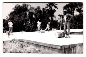 Vintage Black & White Photo Postcard of Building Construction Scene