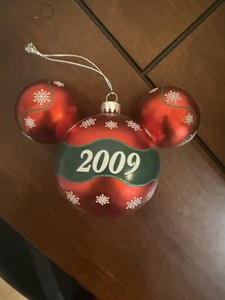 Disney Parks Red Glass Mickey Mouse Ears 2009 Ornament