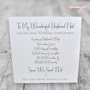 Personalised 6th Iron Wedding Anniversary Card Husband Wife