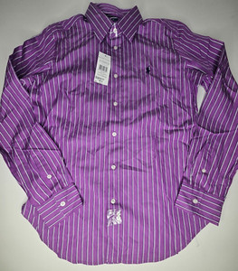Youth Boy's RALPH LAUREN Slim Fit Striped Cotton Dress Shirt Fuchsia size 12 NEW