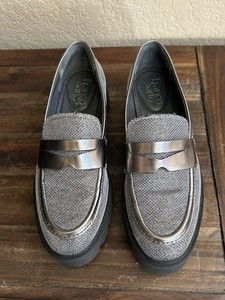 Franco Sarto Bazel Platform Lug Sole Loafers Size 6.5 – Metallic Knit Slip-On